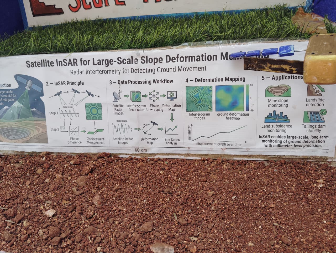 A scaled open-cast mine bench model demonstrating the hybrid monitoring framework under controlled laboratory conditions.